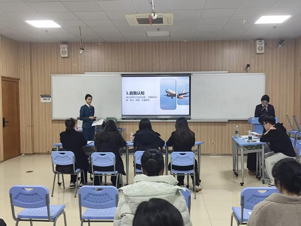 本次比赛分为成长赛道和就业赛道两部分,聚焦职业规划核心能力比拼,来自不同专业的16 位选手按序登台,在限定时间内通过 PPT 展示结合现场讲解,完整呈现职业生涯规划关键内容。选手们从自我认知出发,结合航空服务、管理类相关行业趋势与岗位需求明确职业目标,同时拆解短期学业提升、中期实践锻炼、长期职业突破的具体路径,部分选手针对职业风险制定动态调整方案,体现对职业发展的系统性思考,四位专业老师组成的评审团围绕“职业目标”“学习实践行动”“优化改进”等五个维度评审,评委实时记录展示要点,赛后结合就业市场与行业需求集中点评,对存在的问题提出优化建议。