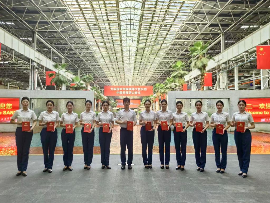 7月21日,三一集团基建行政总部特别定制7天岗前培训,以打造一支“服务意识强、专业能力精”的接待主力军,为学生们后续深入各园区实习打下坚实基础。学生们表现突出,展现了惊人的适应力。他们将空乘专业的“三个敬畏”精神融入工业场景——用机上应急演练经验优化参观路线安全预案,将空乘服务标准转化为商务接待流程。培训结业时,三一集团人力资源总监特别点赞:“学生们把航空服务的精细化、标准化基因注入了制造业服务体系”。学生的专业表现被三一官方公众号“三一行政”专题报道。