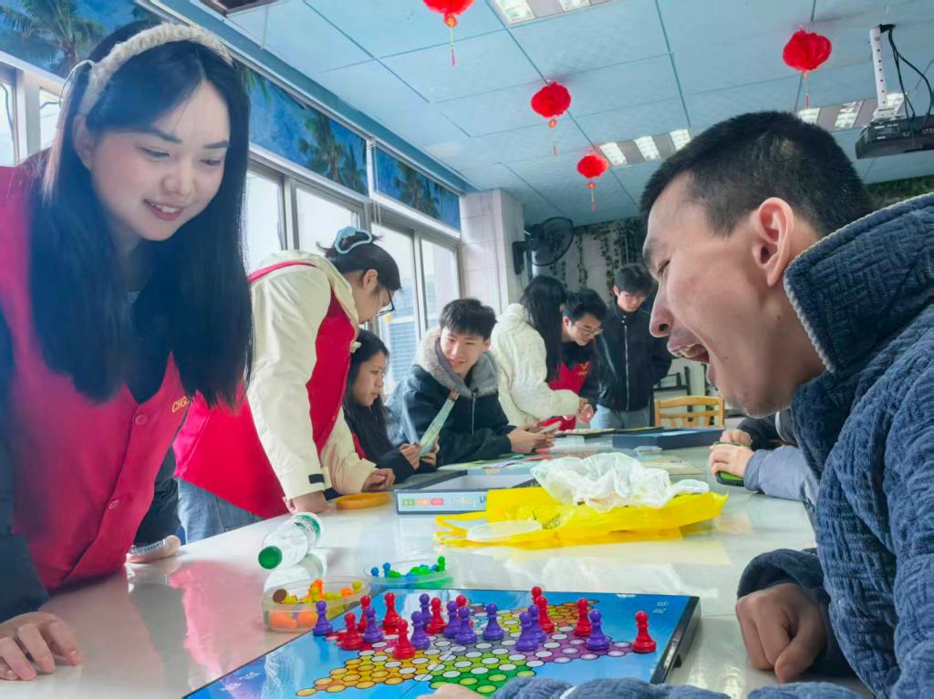 活动伊始,志愿者们早早抵达并精心布置场地。五颜六色的拼图、充满童趣的飞行棋整齐摆放,静待一场温暖的相遇。在“一对一”互动环节中,志愿者们俯身耐心引导,与孩子们携手完成拼图。当零散的拼块逐渐成形,孩子们眼中闪烁着兴奋的光芒,脸上绽放出纯真的笑容。飞行棋游戏中,大家轮流掷骰子、走格子,欢笑声此起彼伏,孩子们在轻松的氛围中提升了专注力与合作意识。随后的才艺展示环节将活动推向高潮。志愿者们献上精心准备的舞蹈与朗诵,并在李同学的带头作用下,孩子们也勇敢地站上舞台,有的唱起稚嫩动听的儿歌,有的随音乐轻轻摆动。在热烈的掌声与鼓励中,原本有些腼腆的孩子也主动走上前,成为舞台的主角,自信地展现自我。“丢手绢”“萝卜蹲”“你画我猜”等集体游戏,更是让现场充满欢声笑语,孩子们在奔跑与互动中,真切感受到陪伴的温暖。活动全程,志愿者们统一佩戴标识,严格遵守规范,以耐心和尊重对待每一位孩子,细心呵护他们的情感与尊严。