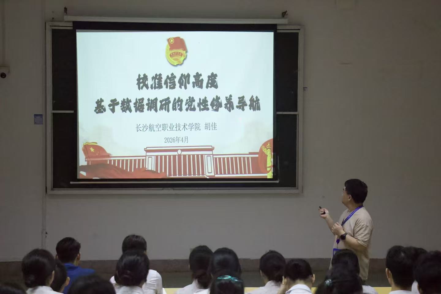 本次党课以“校准信仰高度,数据赋能党性成长”为主题。团委书记胡佳紧密结合新时代青年的思想现状与实证调研数据,围绕理想信念塑造、党性内涵涵养、初心使命践行及作风品德锤炼四大维度,进行了系统而深刻的讲解。深入引导同学们端正入党动机、明晰前行方向、坚定政治信仰,深刻领悟新时代党员责任与要求。