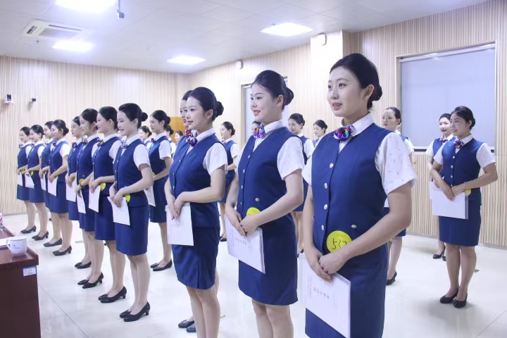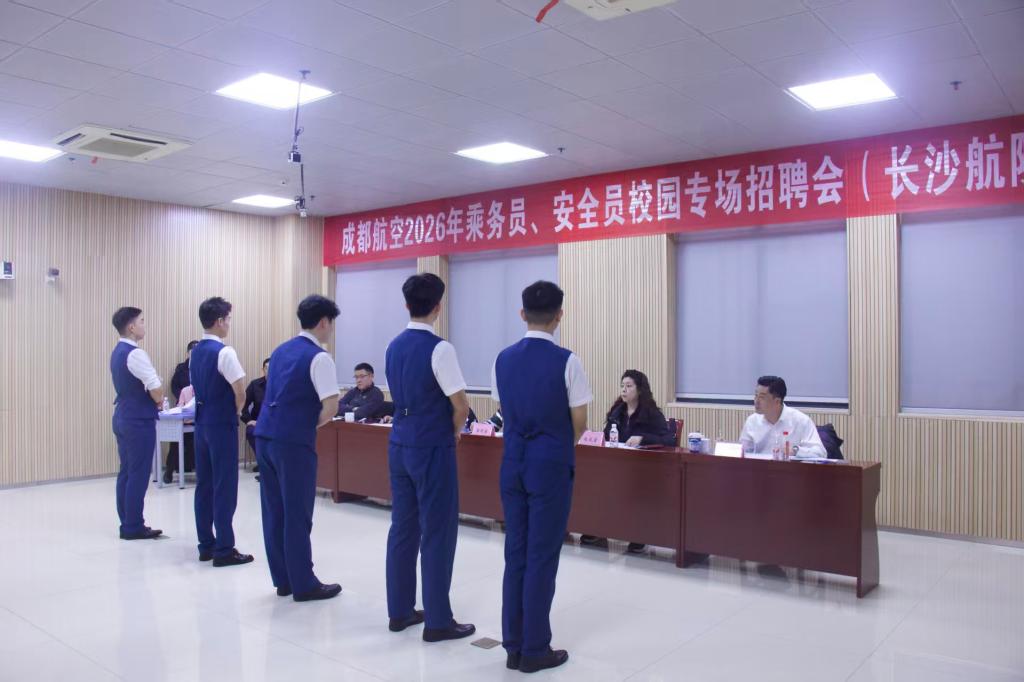 随后,成都航空有限公司在我院24级空中乘务专业中开展乘务员、安全员招聘选拔,170余名学生用专业的素养和饱满的精神状态参与招聘。